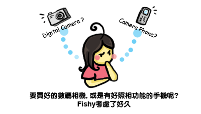 所以啊, 我应该买手机呢, 还是相机啊??? 想要手机是因为我觉得好方便的, 随手就可以拍照了. 但相机呢, 就有比较多的功能. 我之前也蛮喜欢摄影的, 并不是什么专家啦, 就是喜欢拿着相机随手拍一拍那样的, 但绝对不喜欢上镜头! 其实我也想将某一些情景记下来, 然后可以画出来..因为我很健忘的...唉. 大家有什么意见吗? 该买那一个, 有什么好的相机及手机可选择的.
