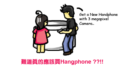 这推销员很够力吧, 真没想到他会那样回答我...气死我啦 以后, 还要再让你们看看这位老兄说的话有多气人. 他是我的同事来的. Orz.....对不起, 眼睛很盲, 没看见handphone 变 hangphone 了! 我懂我一路来都很多错字 >.< 还有啊, 忘了放相机上桌面去!